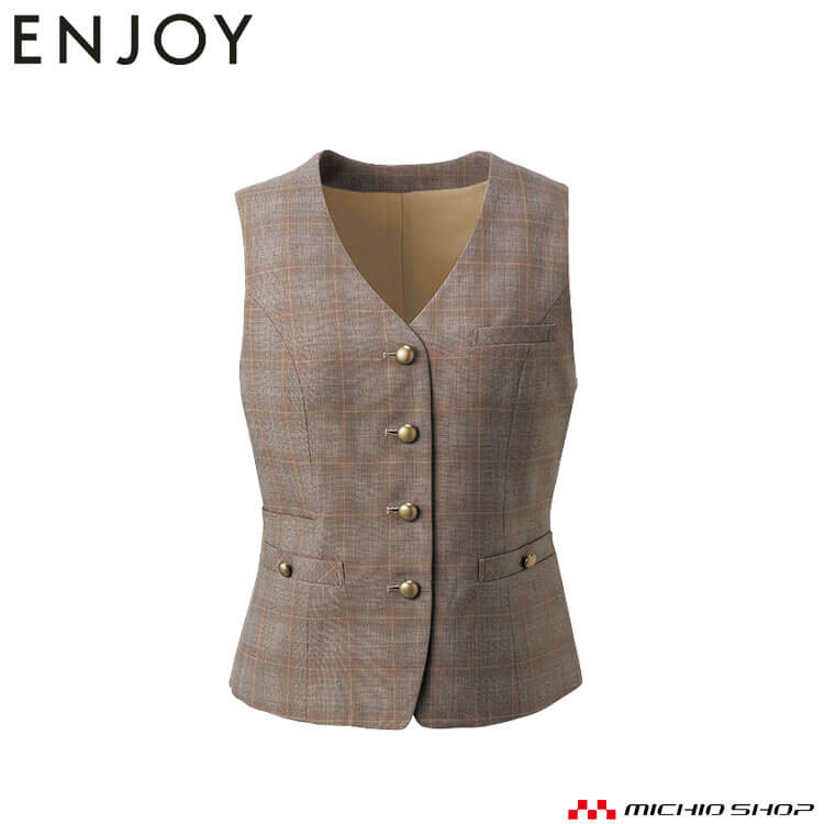 19号 事務服 ベスト EAV932 レディース チェック オフィスウェア 制服 ユニフォーム ENJOY カーシーカシマ