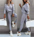 ・裤长: 长裤・面料: 彩棉・主な素材: ポリエステル, 氨纶・カラー: ブラック, 浅灰色, 深灰色, 杏色, ピンク・サイズ: XS, S, M, L, XL・スタイル: ストリート・袖丈: 長袖・袖のタイプ: レギュラー・対象: 女性・種類: カジュアルセット