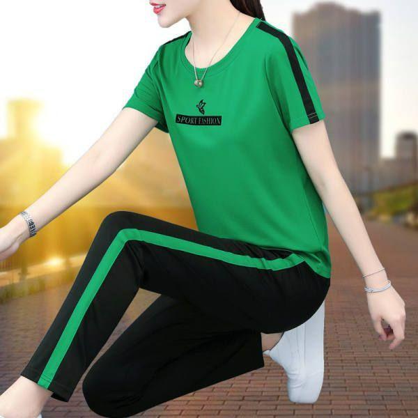 スポーツウェア レディース セットアップ 半袖 & 長ズボン 大きいサイズ ゆったり 普段使い 部屋着 ピンク系 ブルー グリーン ブラック レッド