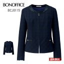 ジャケット レディース チェック BONOFFICE ボンオフィス ジャケット[Nuance Dobby] BCJ0115 bcj0115 女性用 WOMEN ノーカラー ストレッチ 家庭洗濯OK 伸縮性 ホームクリーニング 制服 オフィス 事務服 受付 はおり 紺 ネイビー 5号 7号 9号 11号 13号 15号 17号 19号