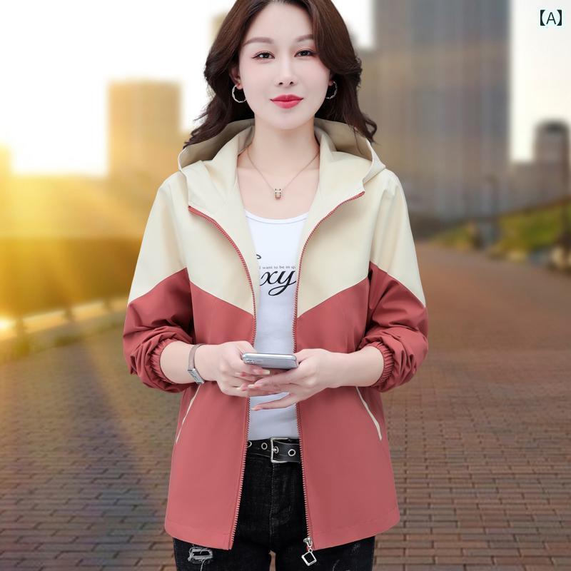 春秋 レディース カジュアル ジャケット ママ 春秋 ジャケット レディース トップス 2025 春 カジュアル ファッション ウィンドブレーカー 薄手 カラー ブロック スポーツ