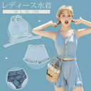 タンキニ水着 服みたいな 水着 3点セット 肩出し セクシー ワイヤーなし パッド付 レディース 着?せ シンプル 写真映え 撮影用 海 夏 サマー プール リゾート 大人可愛い 旅行 温泉 女性用 ジュニア 学生 女の子 ブルー