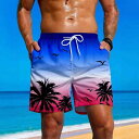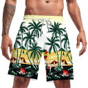 ビーチパンツ メンズ レトロ ボタニカル 柄 ヤシの木 3Dプリント ポリエステル ゆったり ボードショーツ 薄手 夏 ハワイアン リゾート