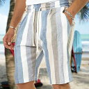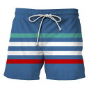 ショートパンツ 男性用 ビーチ サマー ドローストリング ストライプ 3Dプリント ポリエステル 薄手 軽量 微ストレッチ ストレート カジュアル