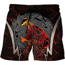 ショートパンツ メンズ 男性用 3Dバイキングタトゥー柄 プリント ストレートシルエット 膝丈 ハーフパンツ 薄手 軽量 速乾 ポリエステル 春夏 ビーチパンツ リゾート 普段使い(x2)