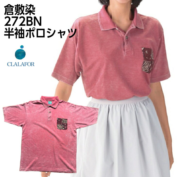 肌が弱い人にも! 国際基準の安全性『倉敷染』 ポロシャツ 半袖ポロシャツ 272BN バンダナ柄 ポケット 胸ポケット メンズ レディース ユニセックス 仕事着 部屋着 ユニフォーム カジュアル 硫化染め エンジ M L LL ポリエステル 綿