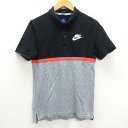 a■ナイキ/NIKE 鹿の子 ロゴプリント 半袖ポロシャツ【S】 黒灰/MENS/111【中古】