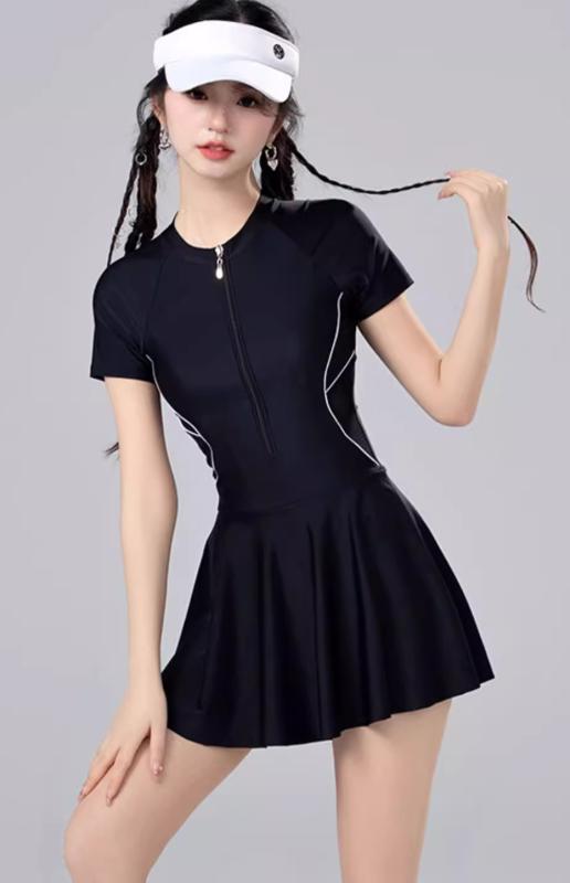 スイムウェア 水着 ワンピース スカート 送料無料 ジップアップ 長袖 半袖 レディース かわいい 大人可愛い きれいめ 上品 こなれ感 シンプル カジュアル 主役級 存在感 個性的 体型カバー ビーチ 旅行 リゾート ガーリー 海 ブラック スイムウェア M L XL 2XL 3XL 4XL 5XL