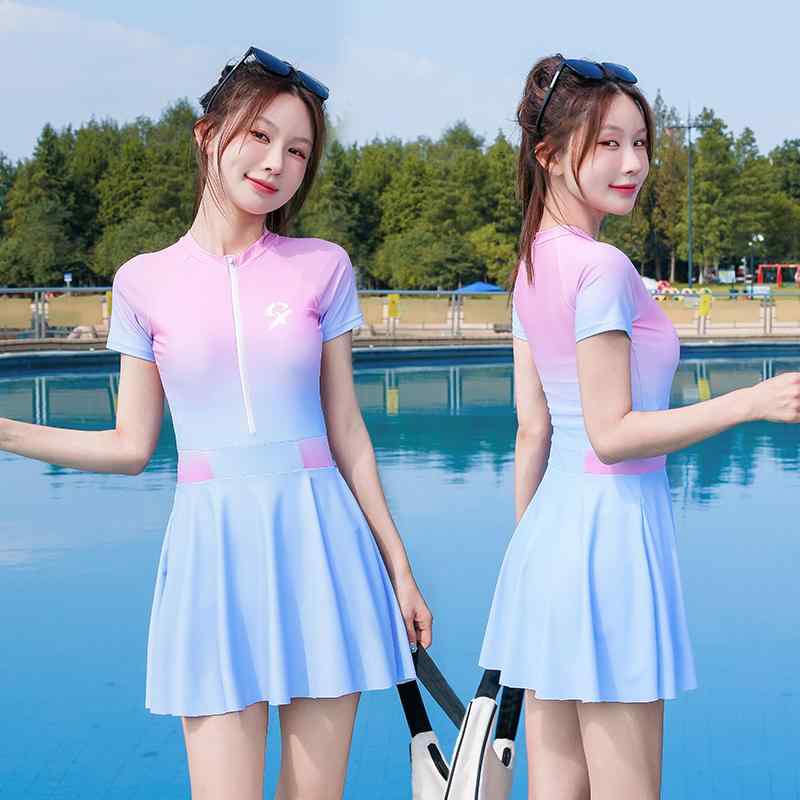 水着 レディース 大人 ワンピース 大きいサイズ オールインワン 体型カバー 半袖 胸パッド ノンワイヤー ジップアップ スカート 短パン 日焼け対策 海水浴 プール 温泉 競泳 フィットネス スイムウェア カジュアル 青 ピンク グラデーション