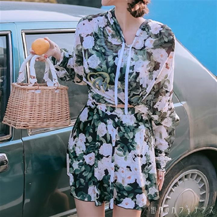 水着 ビキニ スイムウェア ラッシュガード タンキニ 日焼け防止 UVカット 紫外線対策 セット 3点セット フード付き 半袖 Aライン フレア スカート かわいい 大人可愛い きれいめ シンプル カジュアル ナチュラル 華やか 大人 大人っぽい おしゃれ 主役級 女っぽ フェミニン ガーリー 個性的 花柄 リーフ柄 夏 海 ビーチ プール リゾート サーフィン 20代 30代 40代 レディース 女性用 ママ マタニティ ファッション 定番 着痩せ スタイルアップ 体型カバー 二の腕カバーLINE友だち登録はコチラから >>ラッシュガードとタンキニビキニの3点セットです華やかな花柄でありつつもシックな印象♡【カラー 】グリーン【サイズ】M L XL 2XL 3XLサイズ:(cm) M:身長155-162 /バスト70-75AB /ウェスト57-66 L:身長160-165 /バスト75ABC 75AB /ウェスト60-72 XL:身長162-170 /バスト80ABC 85AB /ウェスト69-782XL:身長165-175 /バスト85ABC 85AB /ウェスト75-863XL:身長165-175 /バスト90ABC /ウェスト81-87【商品について】・お手持ちのパソコン・スマホの画面により商品のお色に若干の差がございます。・サイズは買付け先の生産表記ですが測り方により1-3cmほど誤差がある場合がございます。・ノーブランド商品はタグや洗濯表示がないものもあります。【納期について】・2週間-3週間【返品について】・サイズ交換、お色交換などの返品、交換は行っておりませんのでサイズは十分にお確かめの上、ご購入をお願いいたします。・海外製品は日本のものに比べて縫製が粗い場合がございます。糸の始末が悪い、ファスナーが上がりにくい、ボタンのつけ方が甘いということは海外基準では返品対象となりませんのでご理解お願いいたします。【商品コード】 RG-0224