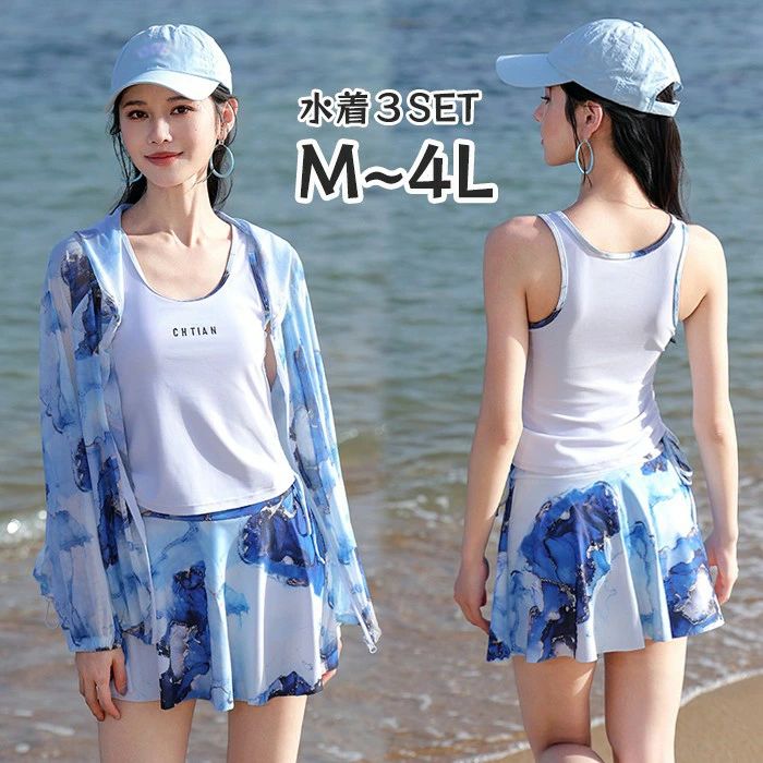 セット内容 ✽.*꙳ ラッシュガード/トップス/スカート(ショートパンツ一体型)「記載のないアクセサリー、小物等は付属しません」 素材 ✽.*꙳ ポリエステル カラー ✽.*꙳ ブルー サイズ (cm) ✽.*꙳ M/ウエスト57-64 バスト70ABC-75ABL/ウエスト64-70 バスト75ABC-80AB2L(XL)/ウエスト70-76 バスト80ABC-85AB3L(2XL)/ウエスト76-84 バスト85ABC-90AB4L(3XL)/ウエスト84-90 バスト90ABC-95AB※表記寸法と実寸値の多少の誤差はご容赦ください。