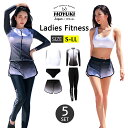 【OUTLET商品】≪3980円→2980円≫フィットネス水着 水着 レディース ビキニ ラッシュガード ショートパンツ レギンス 上下5点セット ノンワイヤー パット入り パンツ 体型カバー 海 プール ベビースイミング ヨガ スイミング 日焼け対策