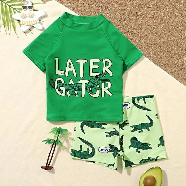 子供 水着 男の子 ラッシュガード 半袖 ショートパンツ キャップ 2点セット セットアップ キッズ ジュニア 90cm100cm110cm120cm 裏地付き 男児用 UV対策 水遊び プール 海 川 アウトドア おしゃれ かわいい ワニ柄 uvカット 日焼け対策