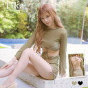 レディース 水陸両用 長袖 ラッシュガード 水着 2点セット 体型カバー M〜L L〜LL YG-2014 上下セット UVケア 紫外線防止 UPF50+ プルオーバー ショートパンツ 無地 フリル ブラック ホワイト カーキ モカ ベージュ ブルージュ 大きいサイズあり