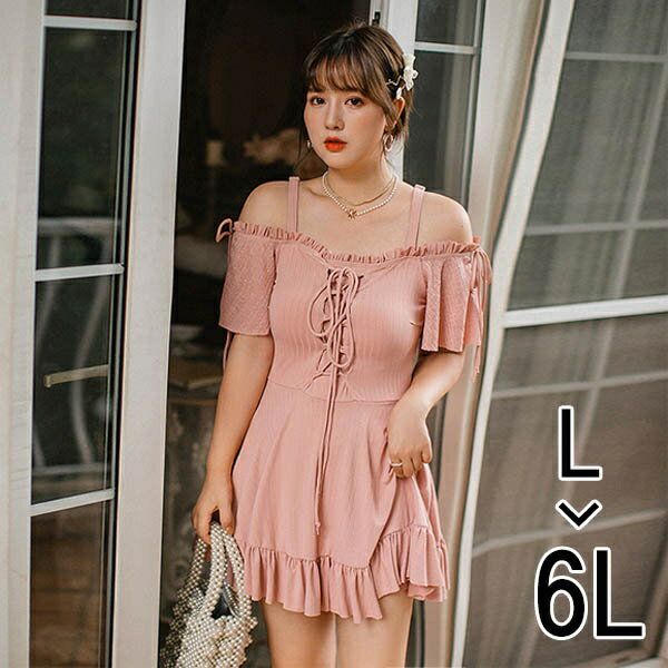 【8%OFFクーポン】水着 大きいサイズ ぽっちゃり水着 レディース 体型カバー 大きいサイズ水着 ぽっちゃり オールインワン ワンピース オフショルダー 海 沖縄 大人 可愛い セクシー 韓国風 着痩せ 女性用 新作 L 2L 3L 4L 5L 6L ピンク dm069t2t2zs