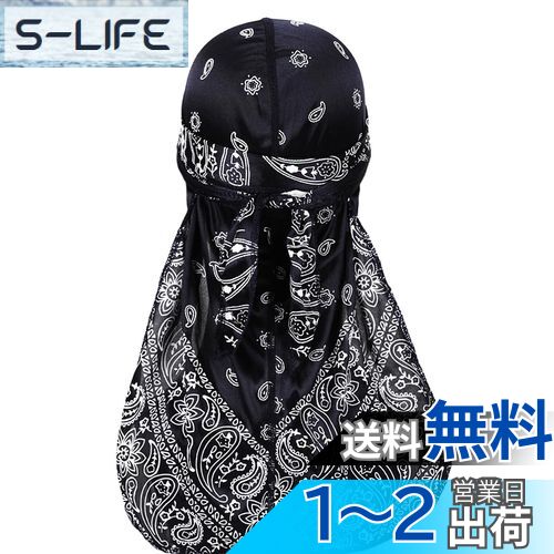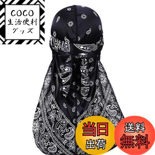 【送料無料】[Trifong] ドゥーラグ 黒 ペイズリー柄 durag 光沢の生地 du-rag 海賊 バンダナ ヒップポップ ダンス ウェーブ キャップ デューラグ hiphop衣装 ダンス衣装 ラッパー ブレイクダンス ダンサー バンダナキャップ 頭髪 頭皮 保護 通気性 ブラック