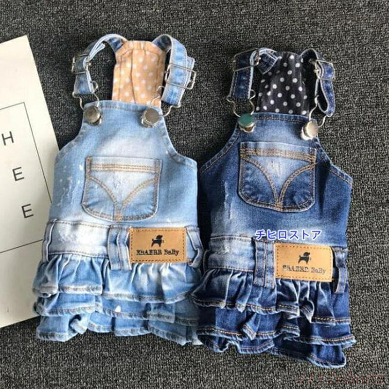 犬 デニム 犬 服 ペット服 お散歩 お出かけ デニムスカート ドッグウェア ワンピース ペットウェア つなぎ ウォッシュ加工 おしゃれオーバーオール