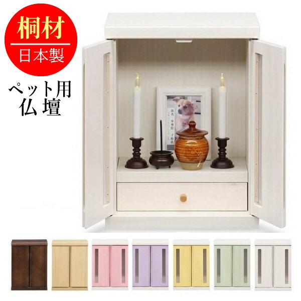 [最大P47倍お買物マラソン対象] ペット用 仏壇 メモリアルボックス 観音扉付き 引き出し 日本製 国産 完成品 犬 猫 仏具 桐 骨壷収納 佛具 箱型 木製 小型 カラフル 幅32 コンパクト おしゃれ