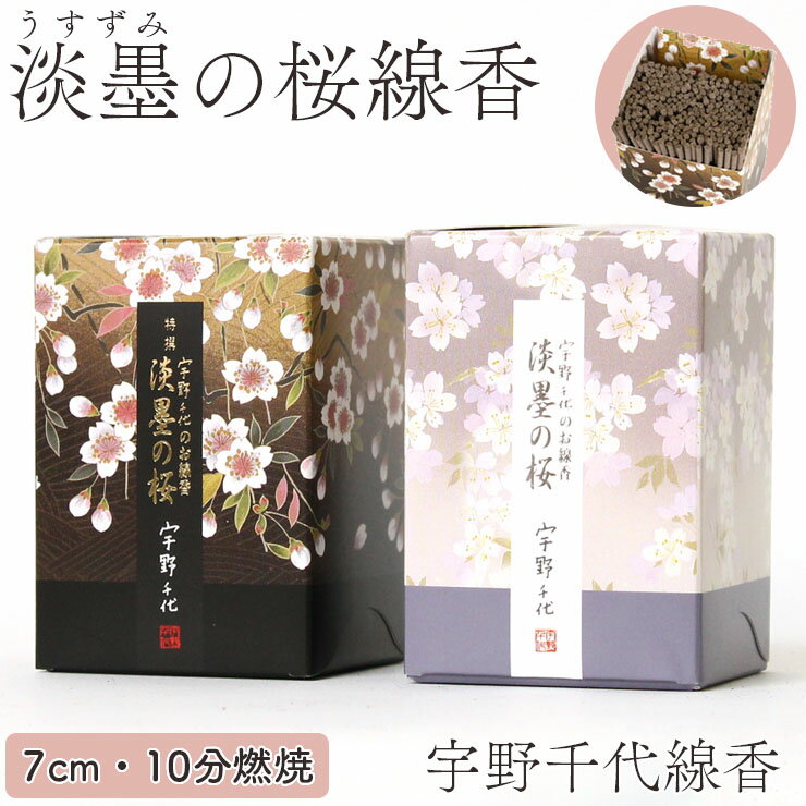 「さくらは幸福の花。私は桜が大好きです。」 ― 宇野千代 岐阜県根尾村(現・本巣市)に爛漫と春を告げる樹齢千五百年の桜があります。 その名は「淡墨(うすずみ)の桜」。 奇跡のように樹齢を重ねたその桜は、継体天皇お手植えの桜と伝えられています。 いまに朽ち果てようとしていた「淡墨の桜」。 その老桜を救うために奔走したのは、宇野千代でした。 見事に蘇生した「淡墨桜」は、「日本三大桜」となりました。 悠久の時を生きた「淡墨の桜」。その奥深く上品な姿、美しさを想い、創り上げたお線香です。 一緒に撮影した香炉・線香皿はこちら! 国産 香立て付き香炉 国産 横置き線香皿 お届け内容 特選淡墨の桜又は、淡墨の桜のいずれか1つ 商品概要 サイズ 箱:5cm×5cm×高さ7.4cm 線香:7cm ●特選淡墨の桜 けむり:かなり少ない 内容量:約70g 長さ:約7cm 燃焼時間:約10分 原料:タブ樹皮・天然白檀・天然植物精油等 ●淡墨の桜けむり:ほとんどない 内容量:約75g 長さ:約7cm 燃焼時間:約10分 原料:タブ樹皮・桜皮ポリフェノール等 注意事項 ・燃焼中はそばを離れないでください。 ・必ず不燃性の容器をお使いください。 ・カビ変色等を防ぐため直射日光、高温多湿を避けて保管してください。 ・ご使用前に必ずパッケージ側面の説明をお読みください。