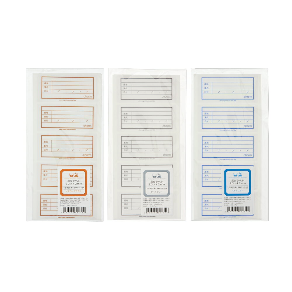 3色セット チャームオリジナル昆虫ラベル 93×42mm 25枚(5面×5枚シート)×3色 昆虫 管理 関東当日便