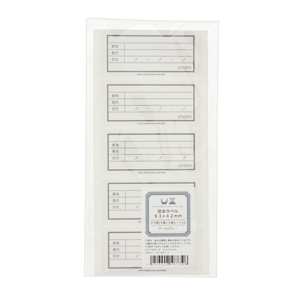 チャームオリジナル昆虫ラベル 93×42mm クールグレー 25枚(5面×5枚シート) 昆虫 管理 関東当日便
