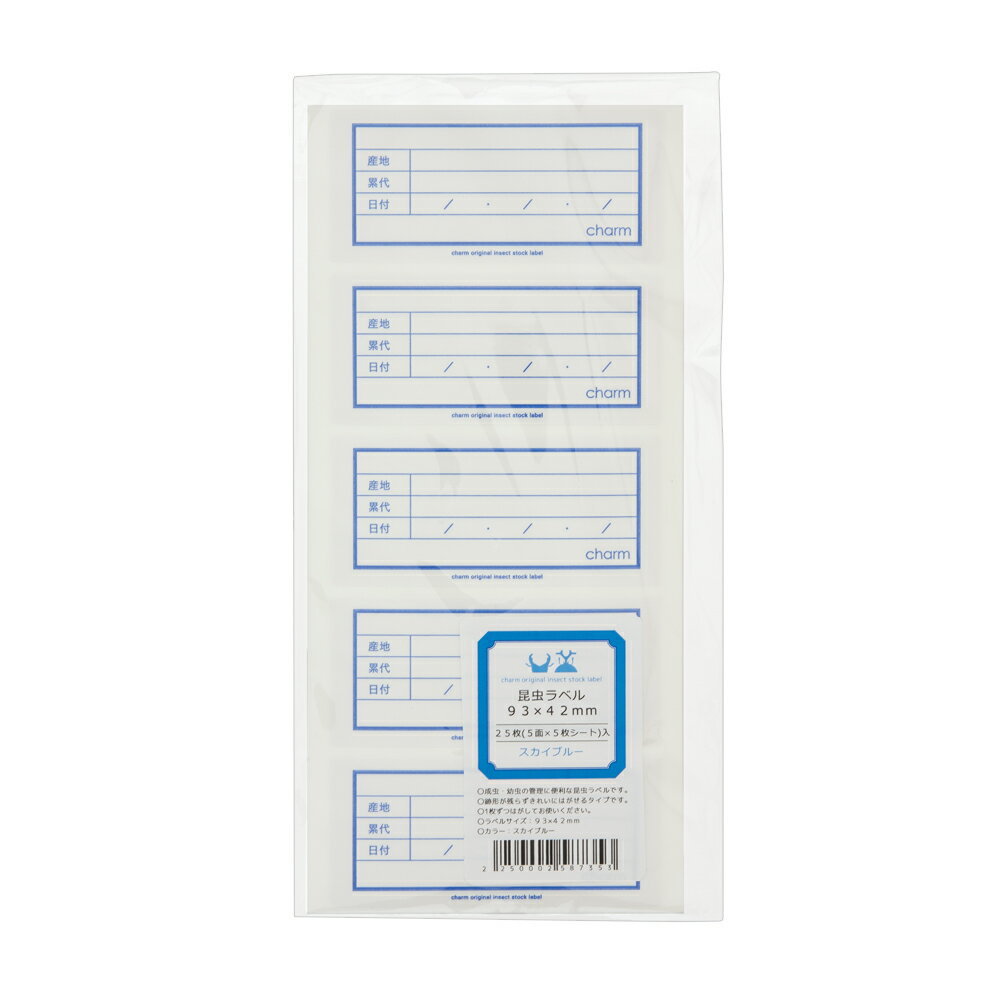チャームオリジナル昆虫ラベル 93×42mm スカイブルー 25枚(5面×5枚シート) 昆虫 管理 関東当日便