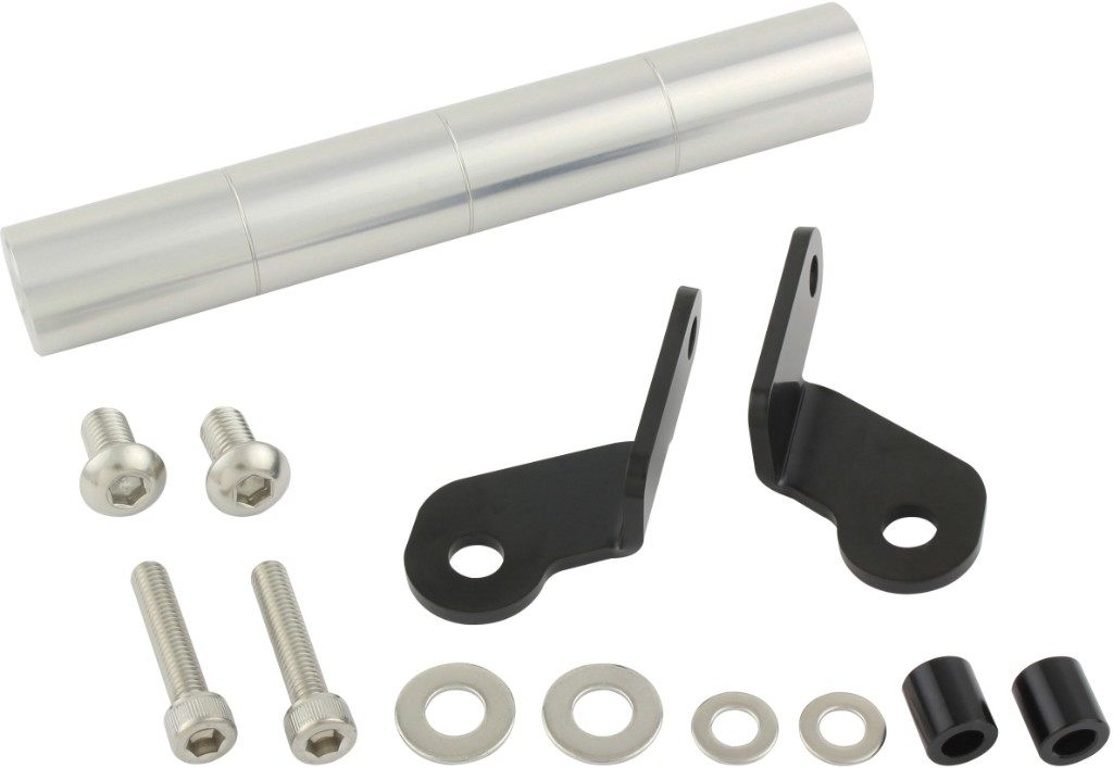 ■商品概要【仕様】・取り付け可能範囲ブラケット幅:60mm-120mm・シャフト部:アルミ削り出しアルマイト仕上げ・シャフト全長:150mm・シャフト直径:Φ22mm・ステー:チール製・カチオン処理仕上げ。厚さ:3.2mm【生産国】日本【セット内容】・マウントバー(150mm):1本・ボタンキャップボルトM8×15mm:2本・平ワッシャーM8:2枚・マウントステー:1個・アルミカラーL17ブラック:2個・キャップボルトM8×45mm:2本・キャップボルトM8×50mm:2本・平ワッシャーM8:2枚■詳細説明■バーハンドル車のハンドルポスト部に取り付けるタイプ■シャフトはハンドルと同径(22.2mm)ハンドルポストに装着しスマートフォンホルダーをライダーの正面に固定できます。■取り付けステー部:スチール製ブラックカチオン塗装仕上げ・シャフト部:アルミ削り出しアルマイト仕上げ(シャフト直径Ф22.2mmシャフト長150mm)・カラーバリエーションも豊富に全6色、車体に合わせてカラーをお選びいただけます。・ハイクオリティな仕上がりになっています。■注意点※車両により付属のカラーでは高さが足りず取り付け出来ない場合がございます。※この商品はカラー(L17)とキャップボルト(M8×45mm:2本、M8×50mm:2本)を付属させていますが、どの車種にも取り付けできるわけではありませんので、車体をご確認の上不十分の場合は別途ボルト、ワッシャー、カラー等をご用意ください。※メーカー都合により商品の仕様変更がある場合がございます。ご了承ください。■適合車種GSX-S1000F GSX-S1000F 年式: 16-19Z650RS Z650RS 年式: 18-24