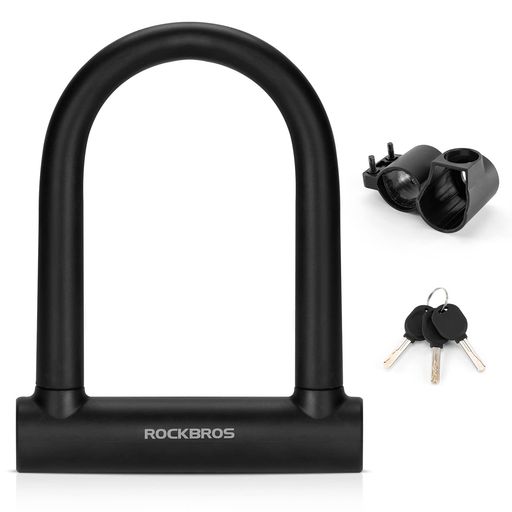 ROCKBROSU字ロック自転車鍵カギ式バイクロック高切断対抗直径22mm頑丈盗難防止シリコンカバー固定ブラケット付き持ち運びやすいロードバイクMTBクロス鍵3本付きブラック