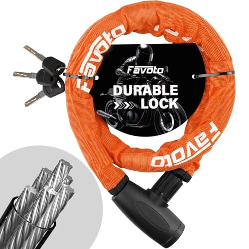 Favoto バイクロック チェーンロック ワイヤーロック 極太 3層構造 頑丈 盗難防止 φ(直径)22mm×1200mm 鍵3本セットオレンジ