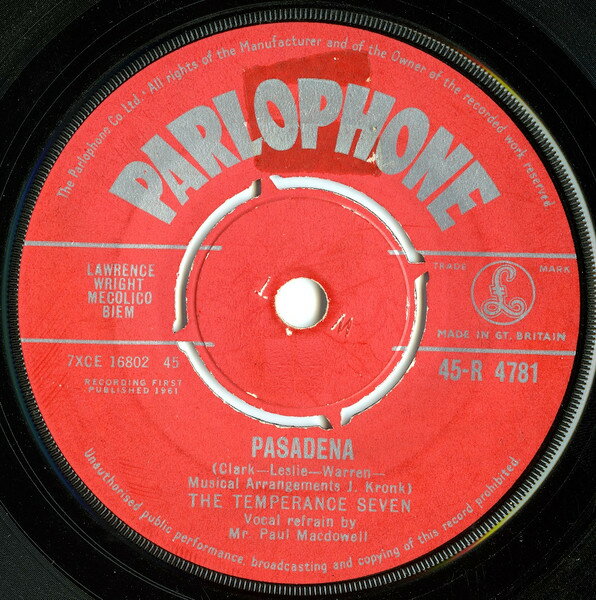【中古】英7" The Temperance Seven Pasadena 45R4781 Parlophone /00080