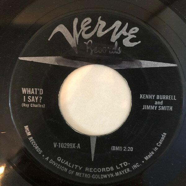 【中古】加7” Kenny Burrell & Jimmy Smith Whatd I Say / Theme From ”Any Number Can Win” V10299X Verve Records /00080