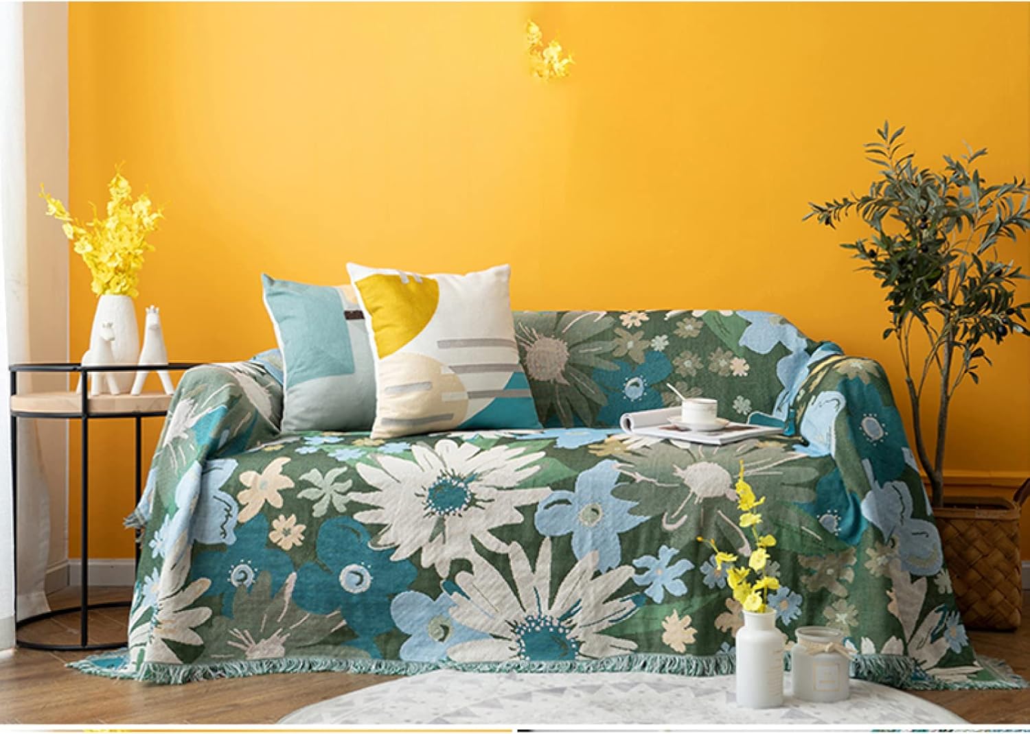 マルチカバー 北欧 ソファーカバー テーブルクロス 多機能 肘付き 肘なし バスマット ラグマット おしゃれ 星座柄 快適 230*330cm デイジー柄 洗える ホワイト リビング 滑り止め 洗濯可