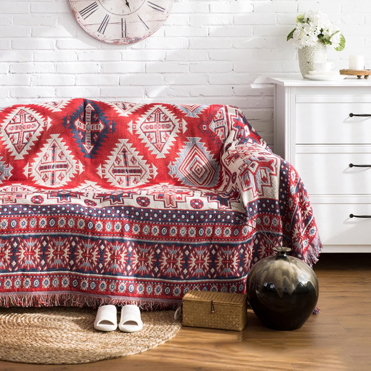 777円OFFクーポン マルチカバー 北欧風 フリンジ付き 綿製品のブランケット 多機能 ソファーのカバー ラグ テーブルクロス テーブル掛け枚 バスマット 毛布 ネイティブ カーペット 1人掛け 2人掛け リバーシブル 汚れ防止 赤 動物柄 インテリア おしゃれ RaogtCYU