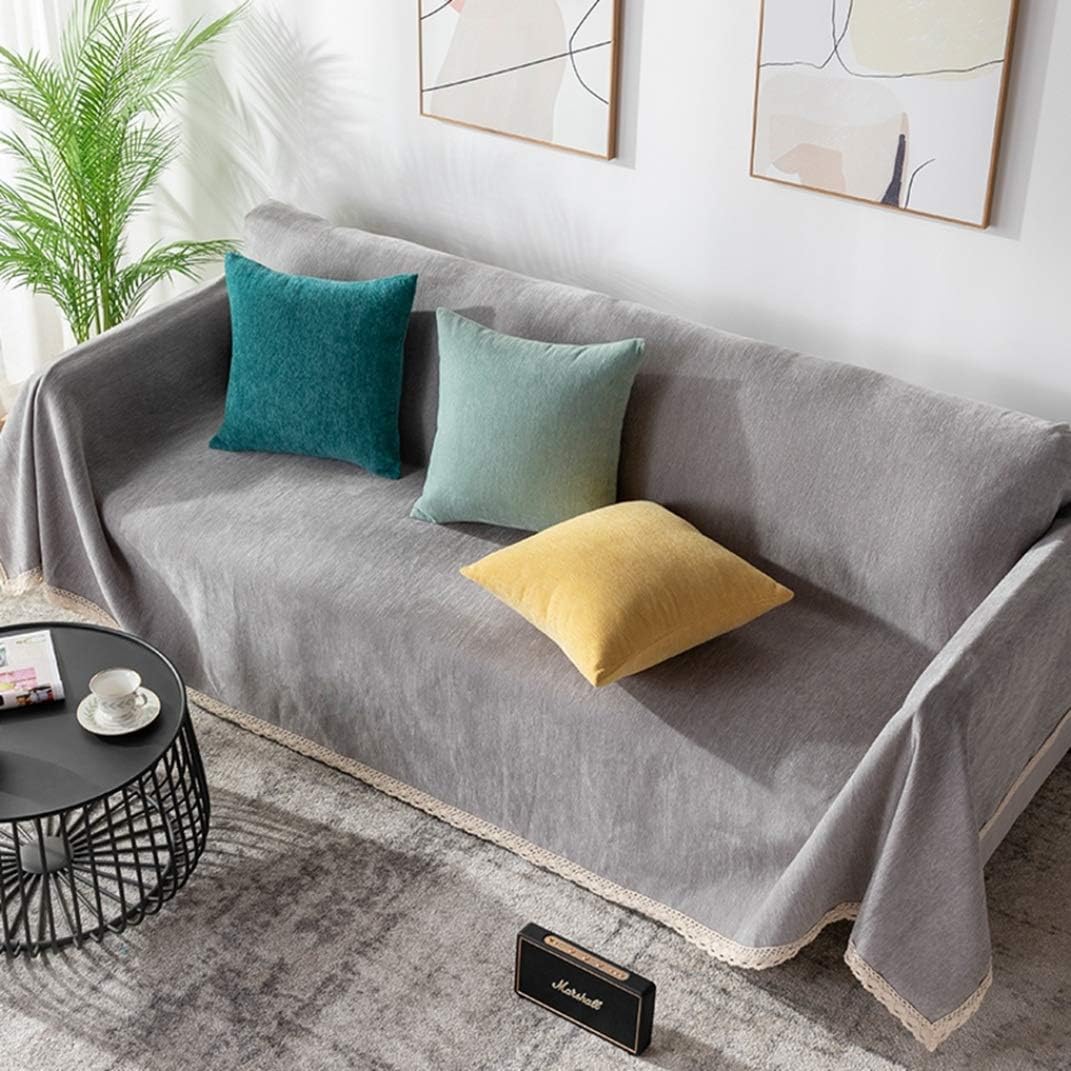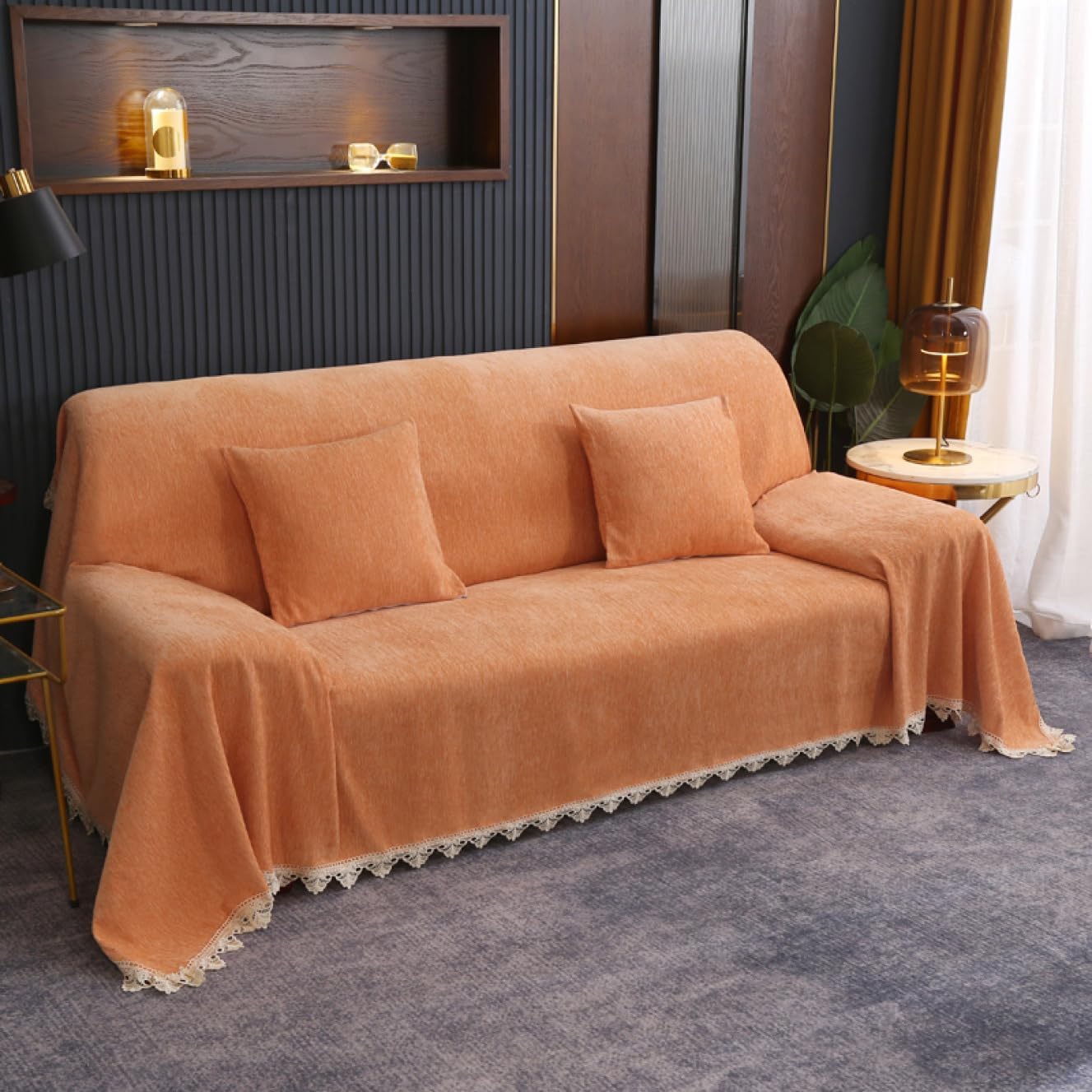 ソファカバー マルチカバー 北欧風 シェニール 無地 180*420 レースの縁取り 多機能 マルチクロス カーペット テーブルクロス バスマット カラー 毛布 絨毯 ベッドカバー ソファ保護カバー