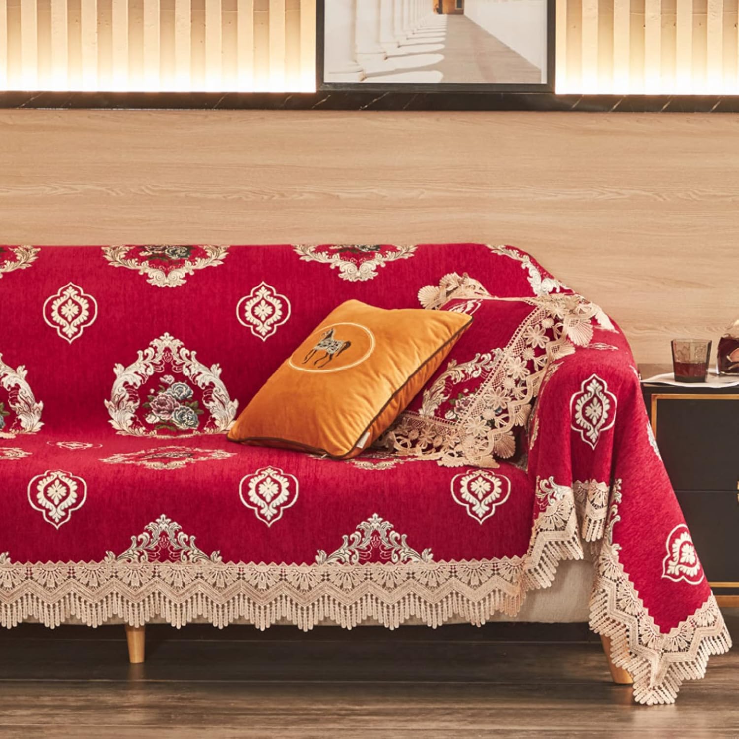 ソファーカバー 180*360 ヨーロッパ マルチカバー 多機能 カーペット テーブルクロス カラー バスマット 毛布 絨毯 ベッドカバー 花柄 刺繍 ゴージャス レトロ フリル付き 薔薇 エレガント
