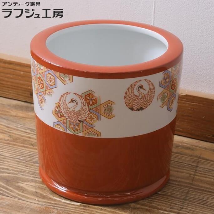 和製アンティーク 火鉢 昭和初期 オールドノリタケ 則武 日陶 鶴丸文 朱色 手あぶり 鉢カバー 傘立て レトロ 和風 和モダン ラフジュ工房 送料無料 r-041563