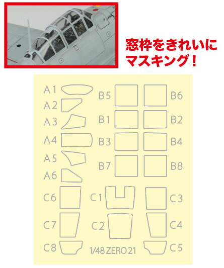 プラッツ 1/48 WW.II 日本海軍 零式艦上戦闘機 二一型用 風防フレームマスキングシール【MS48-4】 マスキングシール