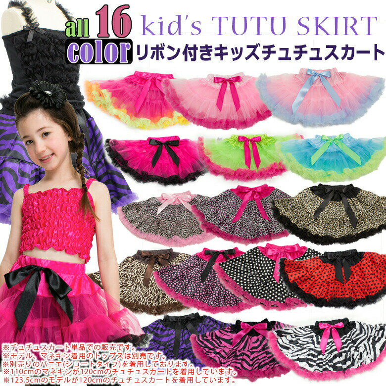 【10%OFFクーポン!BLACKFRIDAY】チュチュ スカート キッズ 16色 アウターパニエ シースルー ヒョウ柄 ゼブラ柄 ダンス 衣装 ヒップホップ 100cm 110cm 120cm 子ども 女児 女の子 arisana