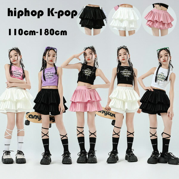 ティアードスカート ブラック ホワイト ピンク キッズダンス 女の子 チアガール ドラムショー 公演服 スカート hiphop K-pop 舞台 団体服 演出服 練習着 イベント 発表会 110-180 ダンス衣装 キッズ ティアードスカート ストリートダンス ジャズダンス スカート