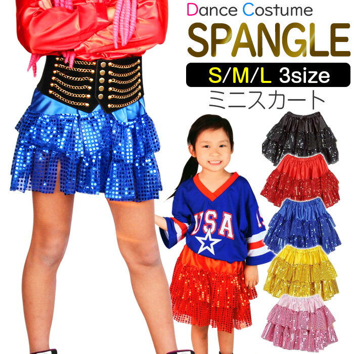 スパンコール 3段フリル ミニスカート 女の子 子供服 キッズ 無地 ゴールド ブルー ピンク レッド ブラック 110cm 120cm 130cm 140cm 150cm 160cm ガールズ レディス ダンス衣装 ヒップホップ キラキラ 派手 目立つ ステージ衣装 イベント衣装