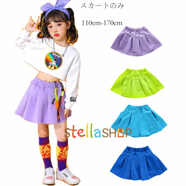 【15%OFFクーポン】ダンス衣装 チアガール ダンス スカート パープル グリーン ブルー ダークブルー 女の子 応援団 演出服 団体服 キッズ ボトムス スカート 舞台 チアガール 体育祭 文化祭 学園祭 HIPHOP 子供用 スカート 無地 おしゃれ 普段着も楽ちん 110-170