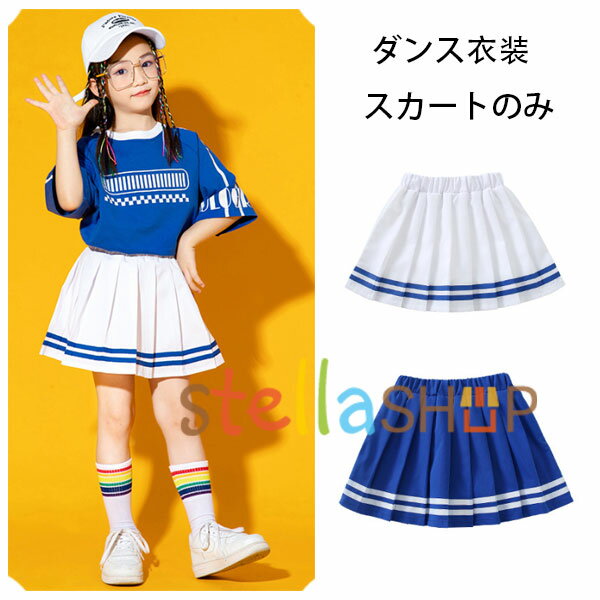 ダンス衣装 女の子 スカート ホワイト ブルー 発表会 hiphop K-pop 舞台 団体服 演出服 キッズダンス ガールズ スカート ストライプ柄 パフォーマンスタイド衣装 小学校、幼稚園、クラス活動 スカート 原宿系 体育祭 文化祭 学園祭 jazz衣装 110 120 130 140 150 160 170 180
