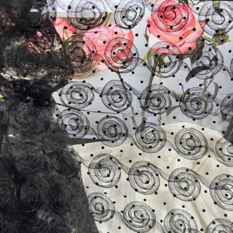 ワンピース キッズ チュール 水玉 立体 ローズ 刺繍 ベルベット 生地 子供服 人形 DIY おもちゃ デコレーション 白 黒 ピンク系 ベージュ レッド カーキ パープル
