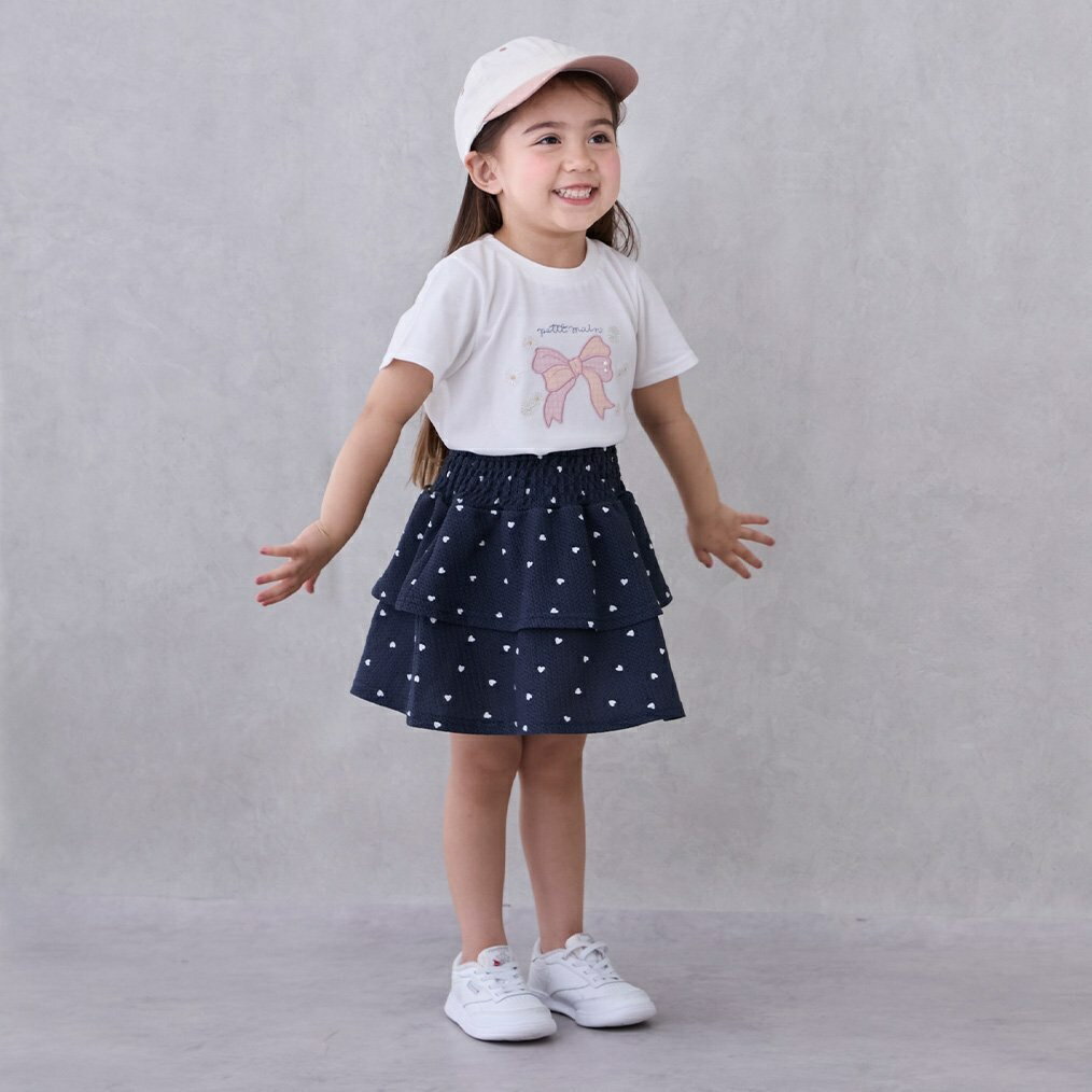 【最大80%OFF!BLACK FRIDAY価格】【20%OFFセール】プティマイン レギンス付きスカート 女の子 ベビー キッズ 無地 チェック ハートボタン 全4色 80-130cm petit main 【G】【2404】【53】