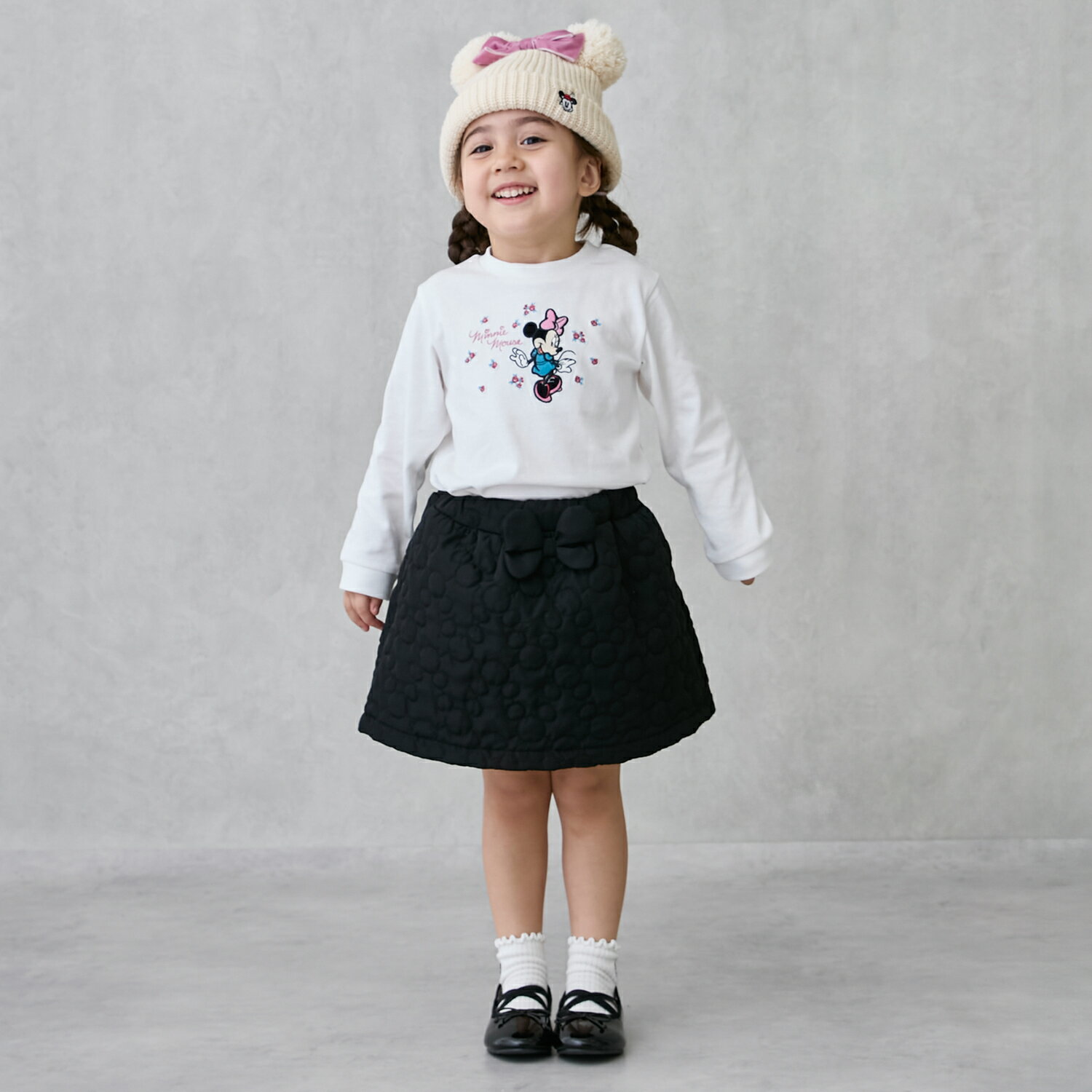 ■トドラー ■ミニーマウスのリボンをあしらった可愛らしいスカートです。さりげないミッキーマウスデザインのキルティング加工で、個性的に仕上げました。さまざまなトップスを合わせやすく、レギンスと重ねるのもおすすめ。ウエストにアジャスターゴムが入っているため、スムーズなお着替えが叶います。内側にお名前を記入できるタグつき。9653575:【Disney】【リンク】キルトジャンスカセットでベビーサイズのお揃い着用ができます。【透け感】透けない【生地の厚さ】普通【伸縮性】なし【裏地】あり【ポケット】あり【アジャスター】あり ■表地:ポリエステル100% 裏地:ポリエステル100% 中わた:ポリエステル100% ■週情報:251119 ■サイズ展開(単位cm): サイズ ウエスト スカート丈 80cm 41 23.2 90cm 44 25 100cm 45 27 110cm 47 30.5 120cm 49 32.3 130cm 52 34.5 サイズ表記について ■カラー展開 黒 アイボリー 赤 メーカー希望小売価格はメーカー商品タグに基づいて掲載しています