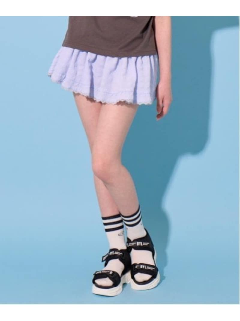 ■ジュニア ■イレヘムディティールがトレンド感のあるシルエットで可愛らしいスカパンです。ライトブルーはレース素材、黒はメッシュ風のチェック素材になっています。程よく透ける素材のため、暑い日も涼しく着用可能。ウエストはアジャスターゴムつきで、お好みに調節できます。コンパクトなTシャツ合わせはもちろん、ロング丈のトップスの下からちらりと見せるコーデも◎。(品番:8152221)とセットアップコーデができます。【おすすめの着用時期は春夏シーズン】【透け感】透けない【生地の厚さ】普通【伸縮性】なし【裏地】あり【ポケット】なし【アジャスター】あり ■ライトブルー_表地_:綿77%/ ナイロン23%/ 裏地_:ポリエステル100% 黒_スカート部分_本体_:綿100% 別布_:ポリエステル100% インナーパンツ部分_:ポリエステル100% ■週情報:250911 ■サイズ展開(単位cm): サイズ ウエスト(上がり寸×伸ばし寸) スカート丈(短い部分×長い部分) 股上 股下 S(140cm) 57×68.5 38×43.5 26 3.5 M(150cm) 60×72 41×46.5 27 4 L(160cm) 63×75.5 44×49 28 4.5 サイズ表記について ■カラー展開 ライト ブルー 黒 メーカー希望小売価格はメーカー商品タグに基づいて掲載しています