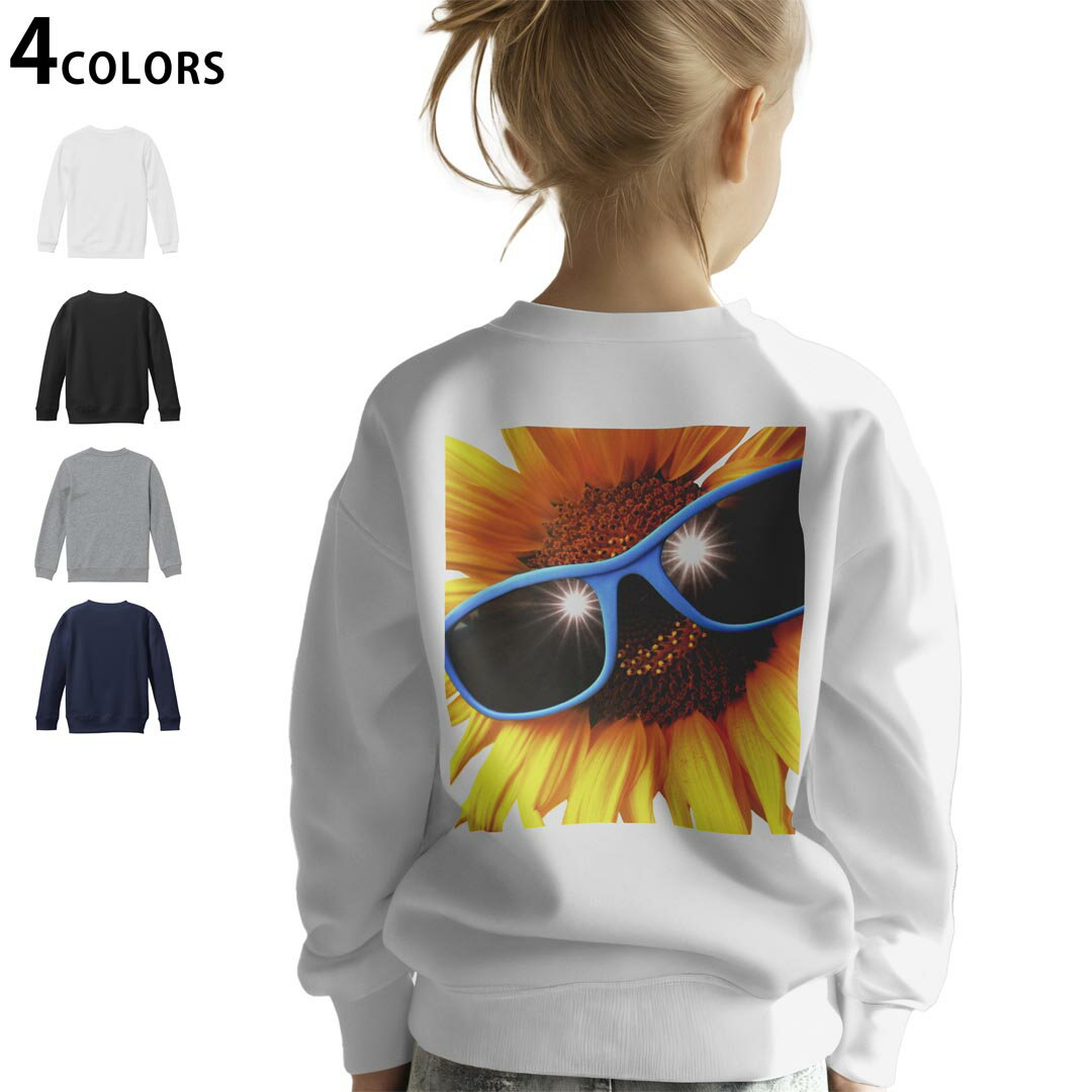 選べる3カラー バックプリント スウェットレーナー キッズ 男女兼用 男の子 女の子 ユニセックス unisex 長袖 デザイン リブ ホワイト ブラック 白 黒 グレー ネイビー 110 130 150 trainer sweat 000940 ひまわり サングラス