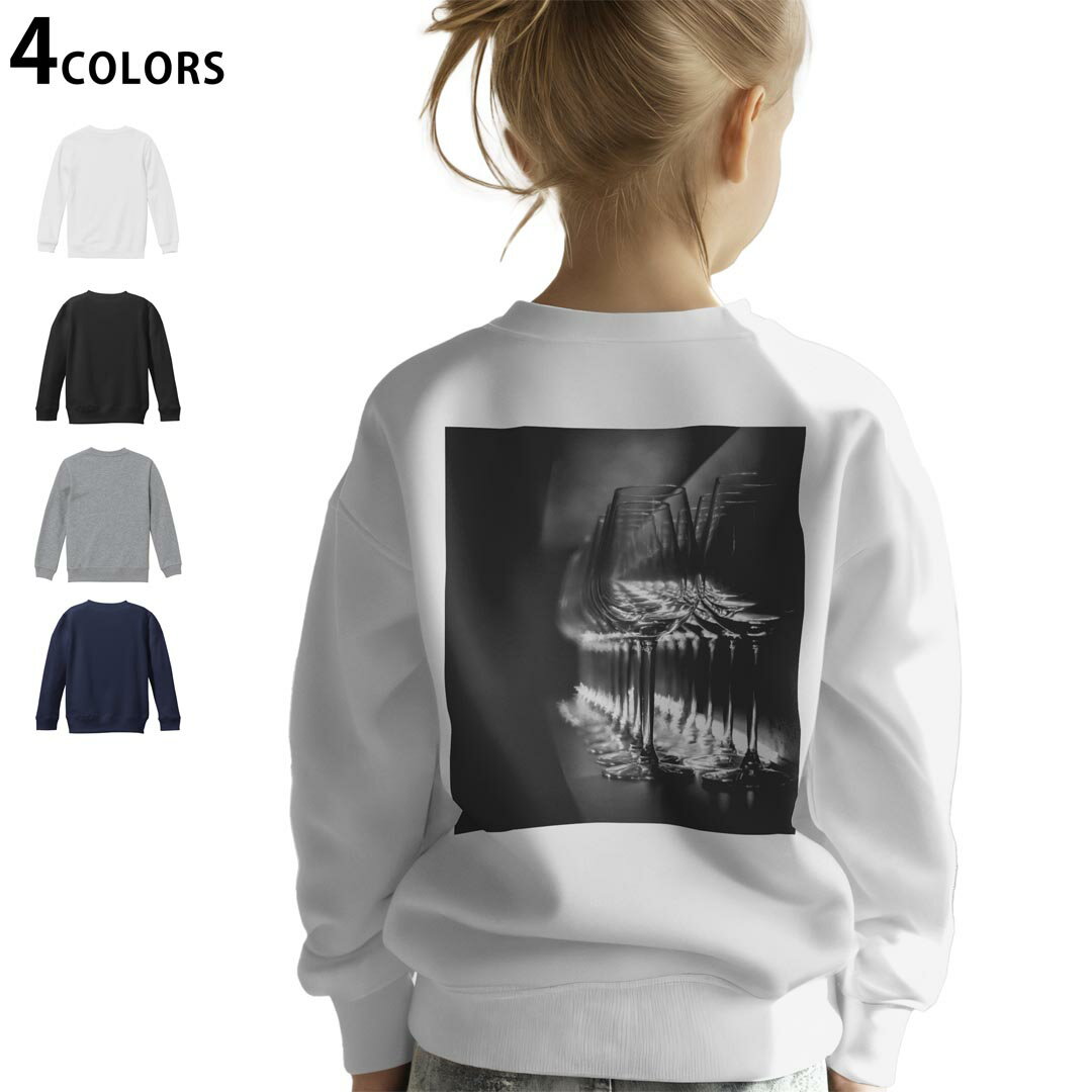 選べる3カラー バックプリント スウェットレーナー キッズ 男女兼用 男の子 女の子 ユニセックス unisex 長袖 デザイン リブ ホワイト ブラック 白 黒 グレー ネイビー 110 130 150 trainer sweat 023974 グラス モノクロ 写真