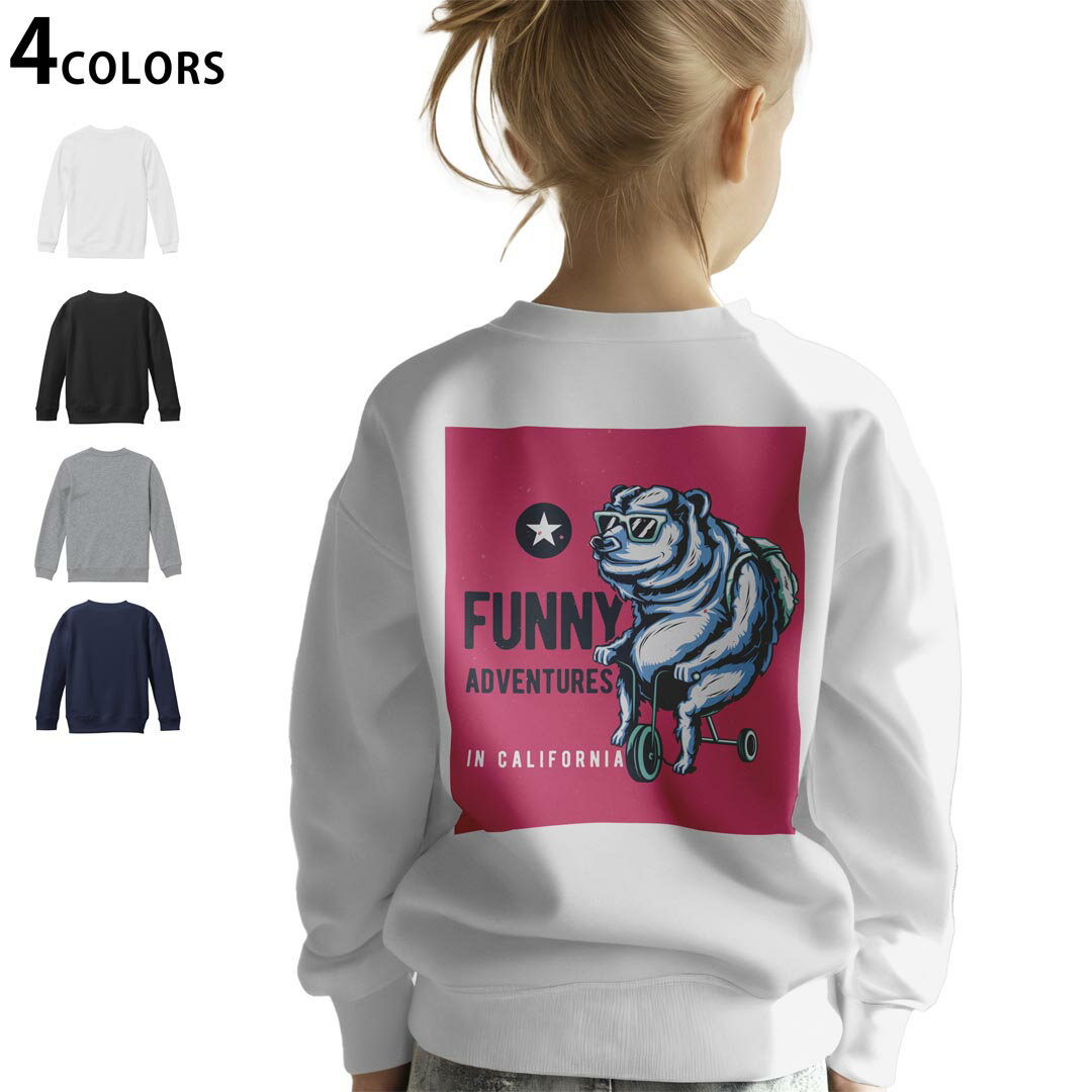 選べる3カラー バックプリント スウェットレーナー キッズ 男女兼用 男の子 女の子 ユニセックス unisex 長袖 デザイン リブ ホワイト ブラック 白 黒 グレー ネイビー 110 130 150 trainer sweat 035597 クール クマ サングラス キャラクター
