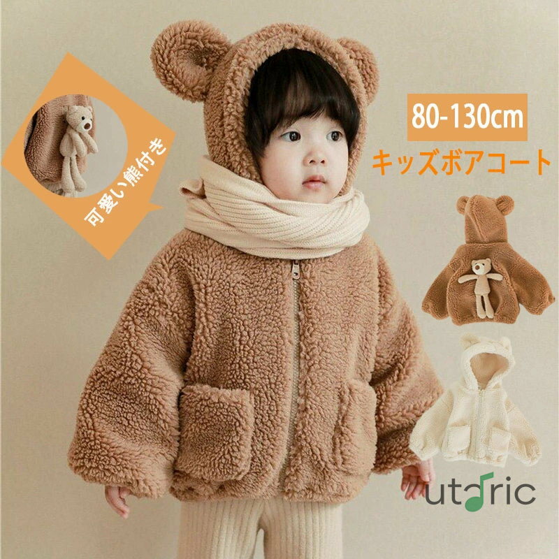 ボアコート キッズ ボアジャケット もこもこ フリースジャケット アウター フード付き 熊耳 子供服 キッズ服 パーカー 男の子 女の子 ベビー服 裏起毛 防寒 厚手 あったかい ふわふわ 通学 部屋着 おしゃれ かわいい くま ベージュ 誕生日 プレゼント 通園 入学式 入園式